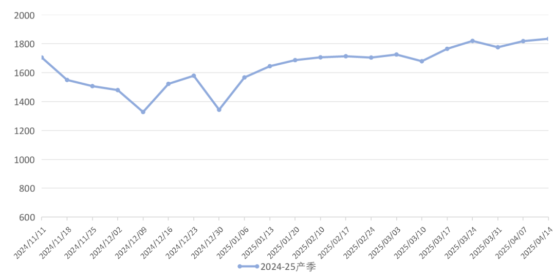 新华·中国(静宁)苹果价格指数结果显示,静宁苹果新产季整体发展保持高位稳定运行态势,截至2025年4月14日,指数报1835.14点,较前一产季同比上涨140.16点,涨幅8.27%。同时,指数已连续三个月呈现波动上行走势,月度平均增长89.19点,涨幅5.69%。